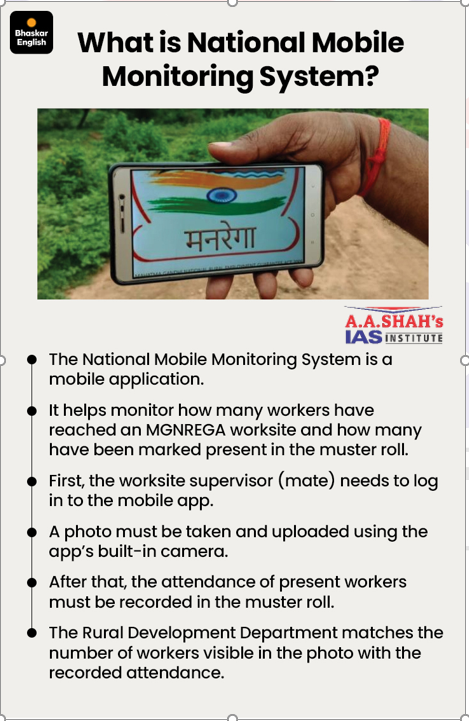 - Under NMMS, geo-tagged photographs of the workers are to be uploaded twice a day.