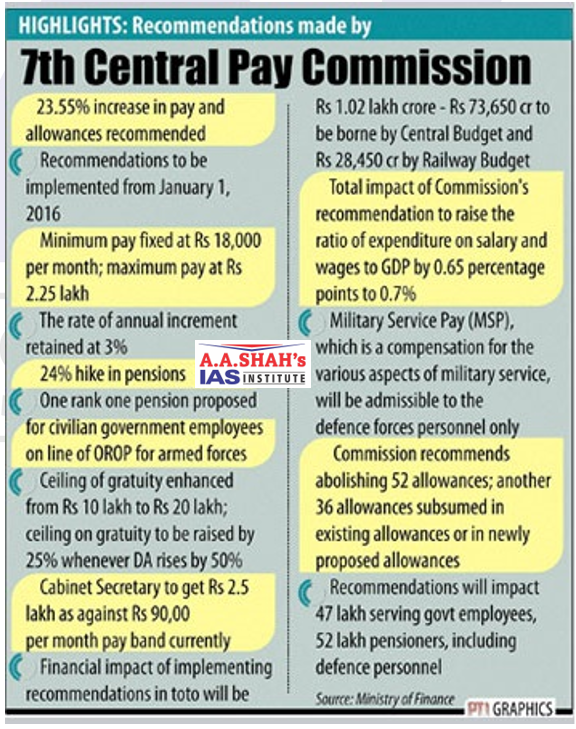 • A Pay Commission is set up by the government (through an executive order) to review and recommend changes to salaries, allowances, pensions, and service conditions of Central government employees (including defence personnel).