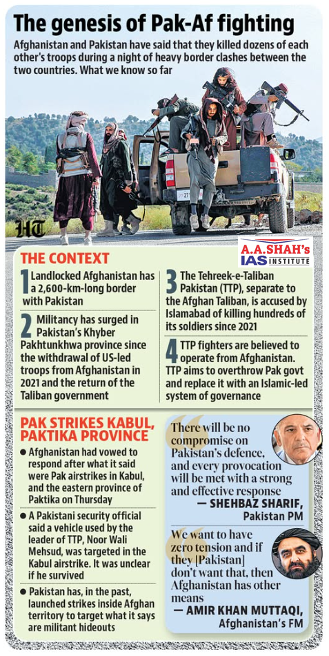 - Following heavy clashes, Pakistan has captured 19 Afghan border posts, and the border crossings between the two countries have been shut temporarily in view of the prevailing tension.