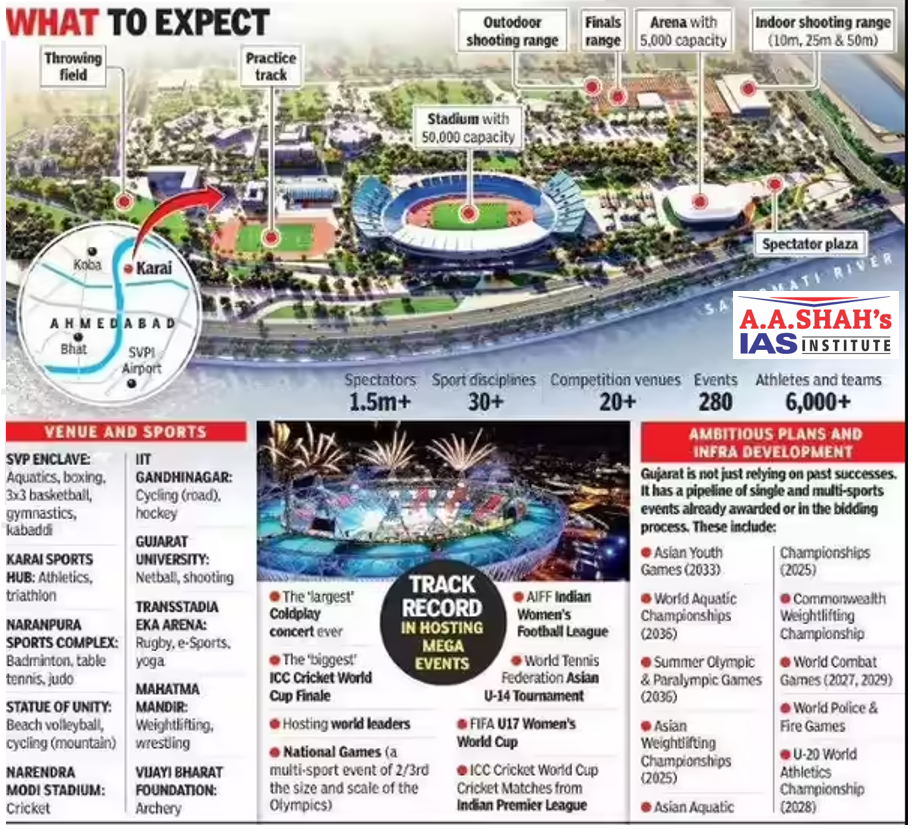 • The Executive Board (EB) of Commonwealth Sport recommended Ahmedabad as the proposed host city for the 2030 Centenary Commonwealth Games.