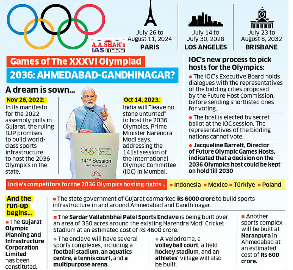 • Ahmedabad, which is also in the race to bid for the 2036 Olympics, and Nigerian capital Abuja had submitted their proposals to host the 2030 Games.