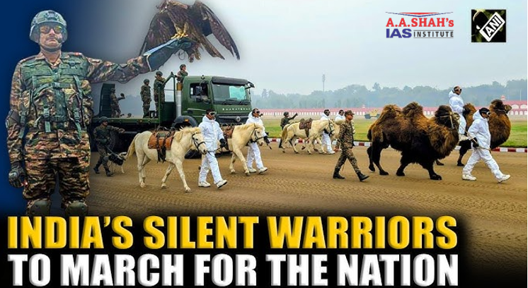 - Often referred to as the “Silent Warriors” of the Indian Army, the contingent will feature two Bactrian camels, four Zanskar ponies, four raptors, 10 Indian-breed Army dogs and six conventional military dogs currently in service.