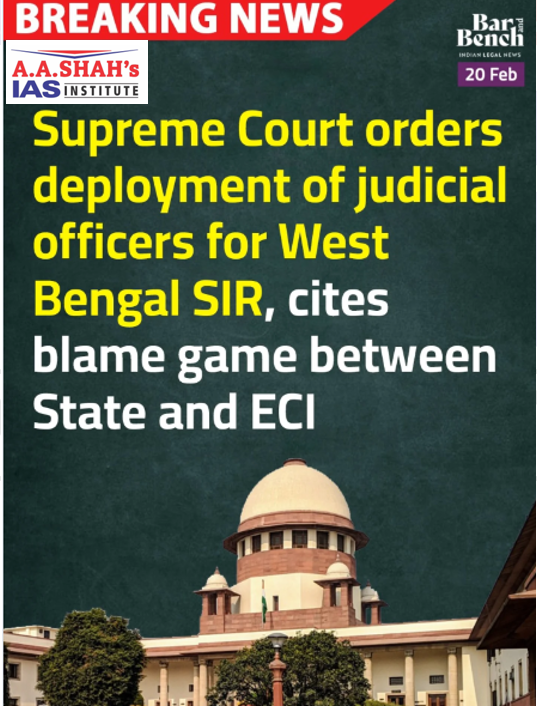 Supreme Court steps in; judicial officers will now join Bengal SIR process POLITY – ELECTIONS 21 FEBRUARY 2026 Final Electorl