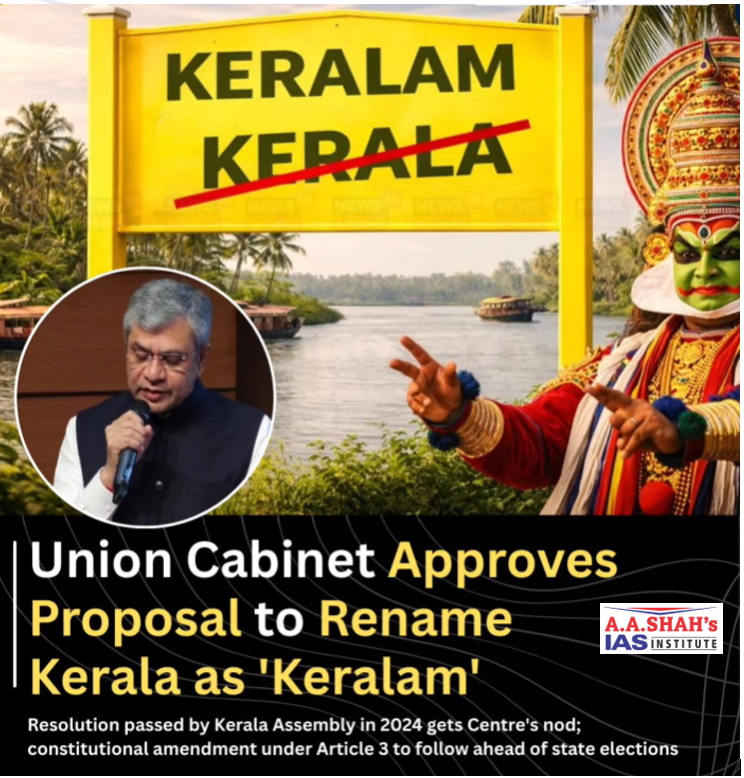 Union Cabinet nod for ‘Kerala’ to become ‘Keralam’ POLITY – STATES 25 FEBRUARY 2026