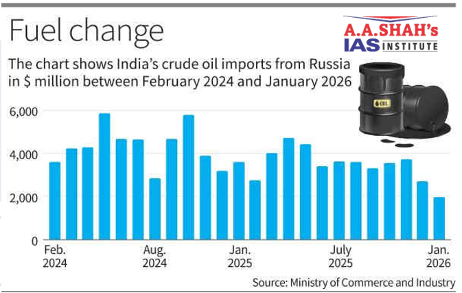 Russian oil imports at new low; West Asia share up BILATERAL – INDIA-USA 3 MARCH 2026 Decreased oil import from