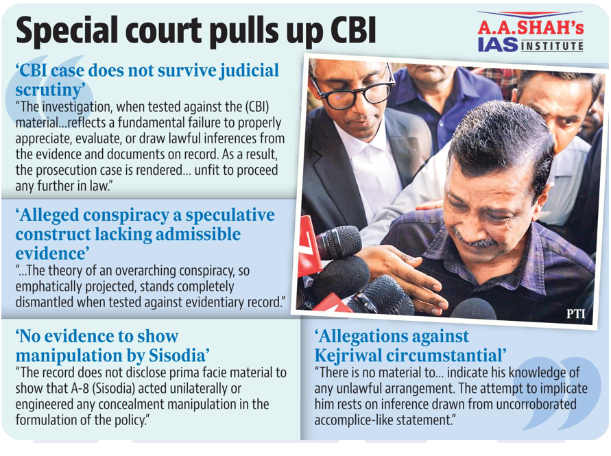 Kejriwal, 22 others cleared in excise policy case POLITY – CENTRE-STATE RELATIONS 28 FEBRUARY 2026 Court verdict Order for departmental