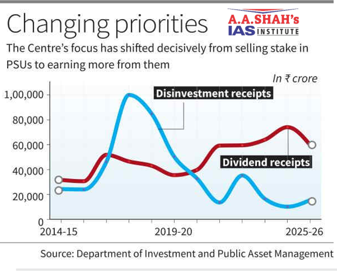Centre’s focus shifts from selling PSUs to earning more from them ECONOMY – POLICY 1 MARCH 2026 Shift from Disinvestment