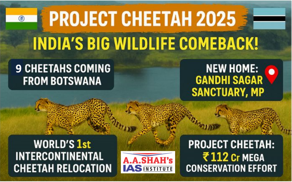 Nine Botswana cheetahs released into Kuno park ENVIRONMENT – BIODIVERSITY 1 MARCH 2026 Current Cheetah Population in India Cheetah species