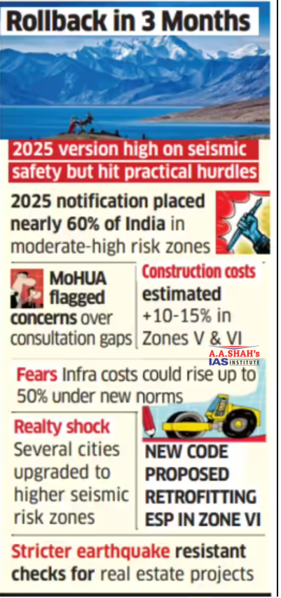 On backlash, Govt. pulls back revised earthquake zoning DISASTER MANAGEMENT 8 MARCH 2026 Revised Earthquake zoning New highest-risk Zone VI