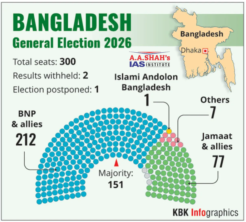 - The Bangladesh Nationalist Party (BNP), led by Tarique Rahman, won a landslide victory in Bangladesh’s Parliamentary Elections.