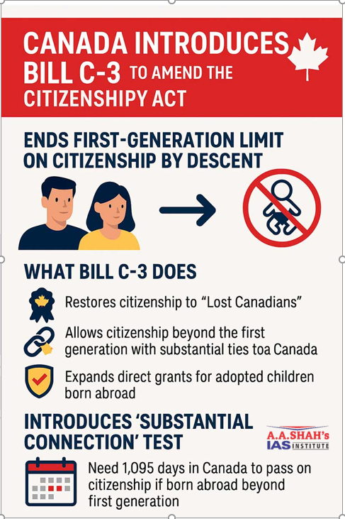 - The new law will also allow a Canadian parent born or adopted abroad to pass citizenship on to their child born or adopted outside Canada on or after the date the Bill comes into force, provided they have a substantial connection to Canada, the release said.