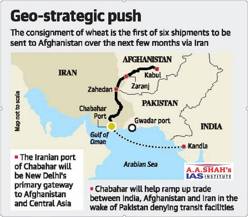 - The port is partly intended to provide an alternative for trade between India and Afghanistan as it is 800 kilometers closer to the border of Afghanistan than Pakistan’s Karachi port.