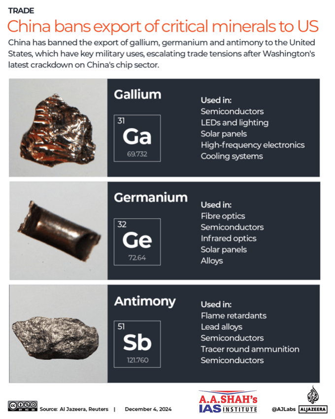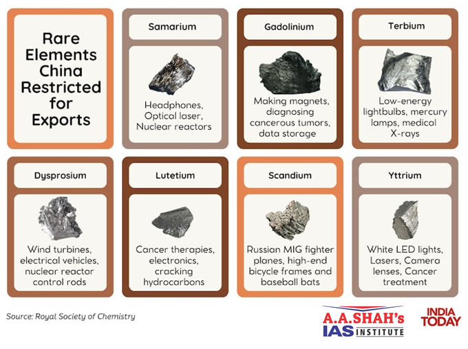- The move targeted elements used in neodymium–iron–boron (NdFeB) magnets — essential for clean energy technologies — as well as those critical to ceramics, phosphors, steel, optical glass, fibres, and aerospace applications