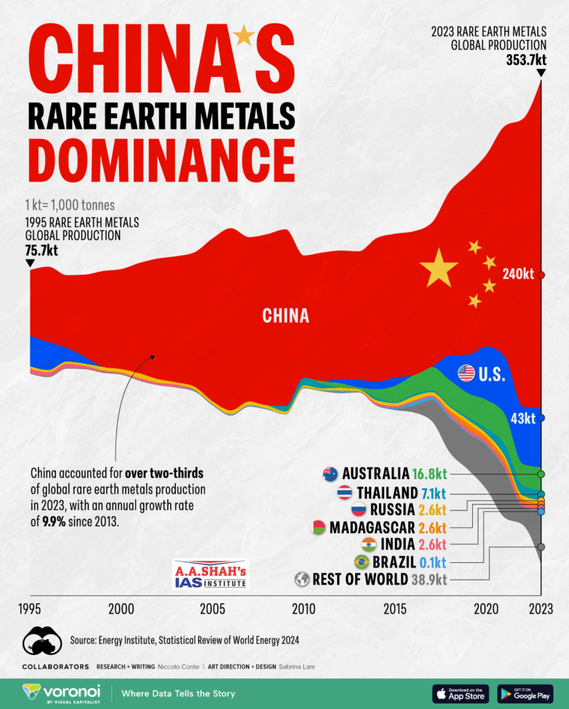 - India, too, is heavily dependent on China for its rare earth imports. Since 2021, more than 75% have come from China.