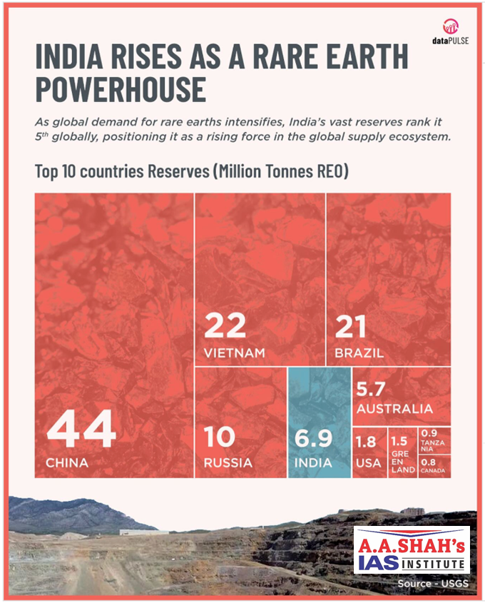 - India has the third-largest rare earth resource globally, with mainly concentrated in its monazite minerals.