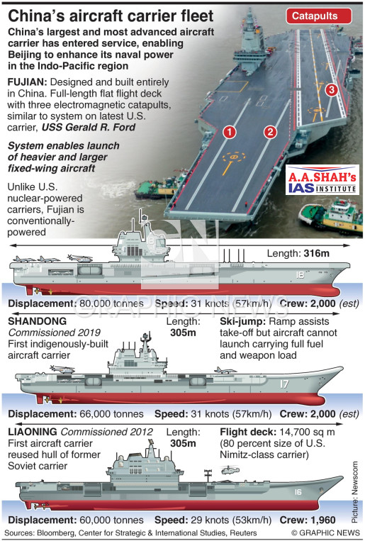 • The Fujian is China’s third carrier and the first that it both designed and built itself.