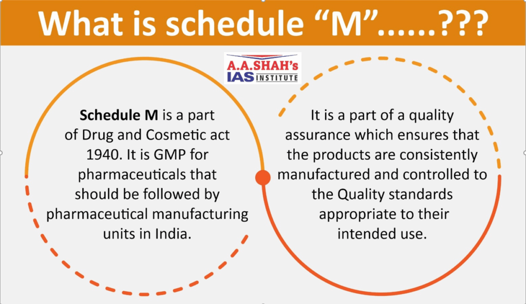 - The revised Schedule M is an updated set of Good Manufacturing Practices (GMP) and regulations for pharmaceutical products in India, part of Drugs and Cosmetics Act, 1940.
