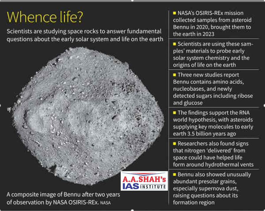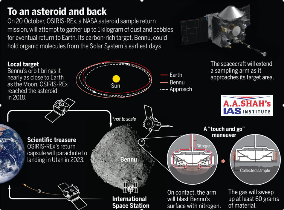 - In 2020, a spacecraft more than 3 lakh km away on a small asteroid called Bennu collected samples of its surface.