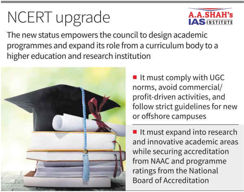 - The notification confers the status on the NCERT, along with its six regional institutes, provided that a list of conditions is met.