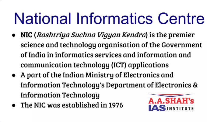 - The National Informatics Centre (NIC), established in 1976, is the technology partner of the Union government and provides technology-driven solutions to it and the State governments.