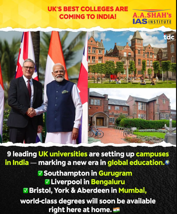 - This follows a 2025 reset in India–U.K. relations, which included a free-trade agreement deepening education cooperation