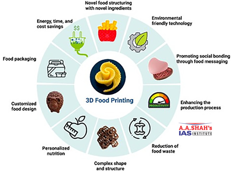 - It uses technologies like nutrigenomics, bio-fortification, 3D food printing, and bioprocessing.