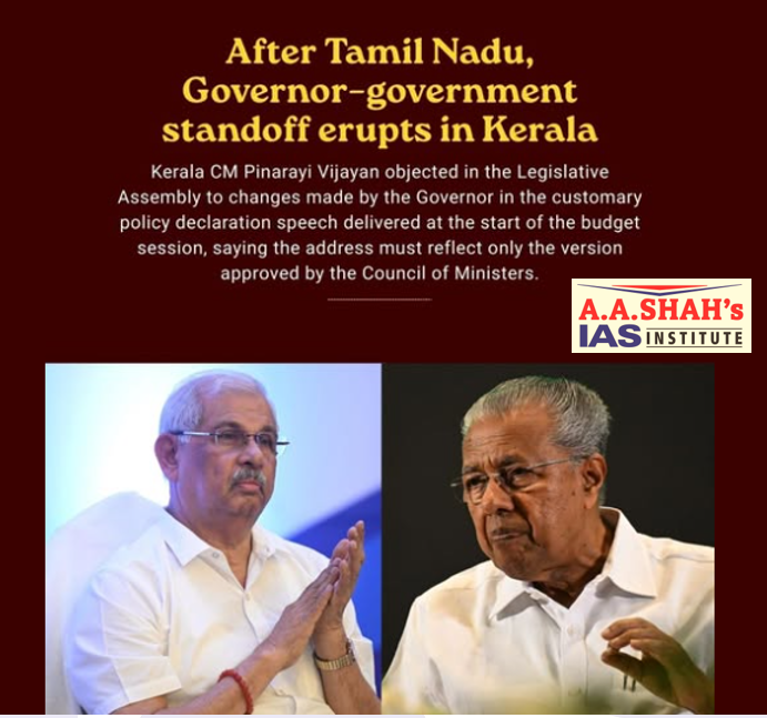 - The Kerala Legislative Assembly saw extraordinary scenes after Chief Minister Pinarayi Vijayan said Governor Rajendra Vishwanath Arlekar had made changes to the policy speech prepared by the State government while delivering the customary address at the start of the first session of the New Year.