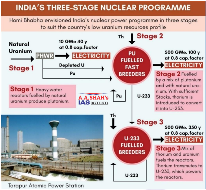 - Homi J. Bhabha envisioned this three-stage programme to take advantage of the fact that India hosts 20-25% of the world’s thorium deposits.