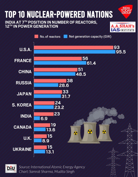 - India currently operates 24 nuclear reactors with a generation capacity of around 9 GW.