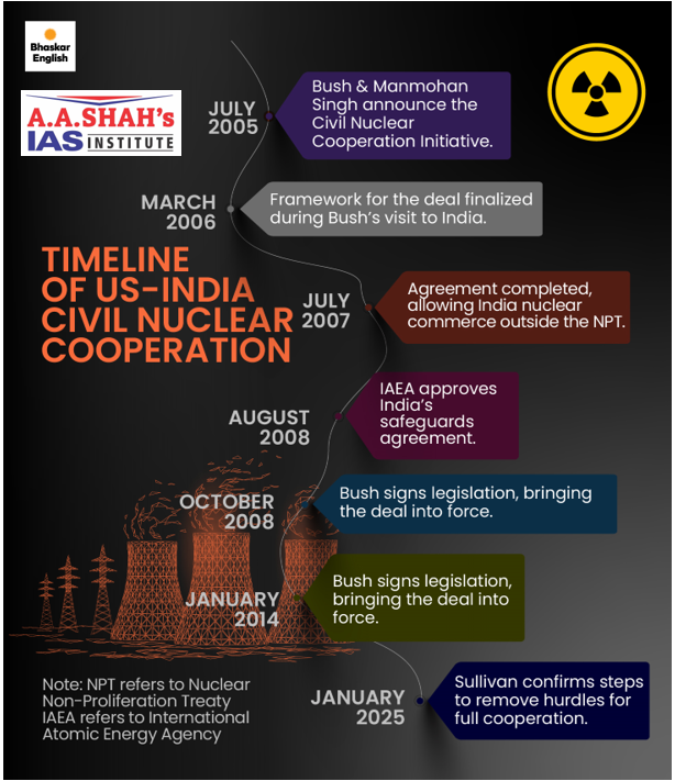 - India-Canada Civil Nuclear Cooperation Agreement (NCA) was signed in 2010, two years after the Nuclear Suppliers Group issued its ‘clean’ waiver for India, allowing it to engage in civil nuclear trade despite not signing the Nuclear Non-Proliferation Treaty.