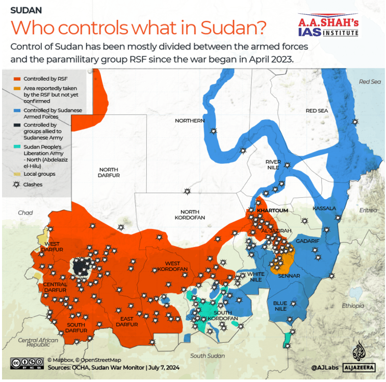 The RSF gained control over much of western Sudan; the army holds the east and north.