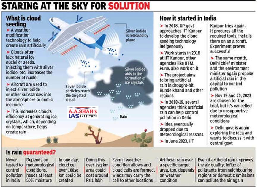 - Cloud seeding, or spraying fine chemical aerosols into rain clouds to induce rain, has been a subject of investigation in India for decades with the acknowledged authorities on the subject — the IITM, Pune — having conducted careful experiments on the effectiveness of cloud seeding to enhance monsoon rain since 2009.