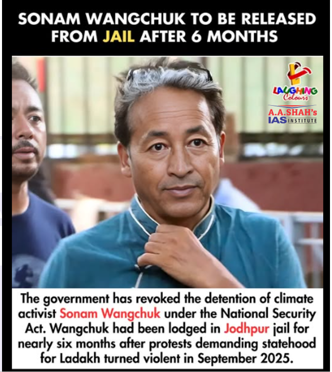 • Mr. Wangchuk was released from Jodhpur Central Jail after the Union Home Ministry revoked the NSA order using administrative powers rarely exercised.