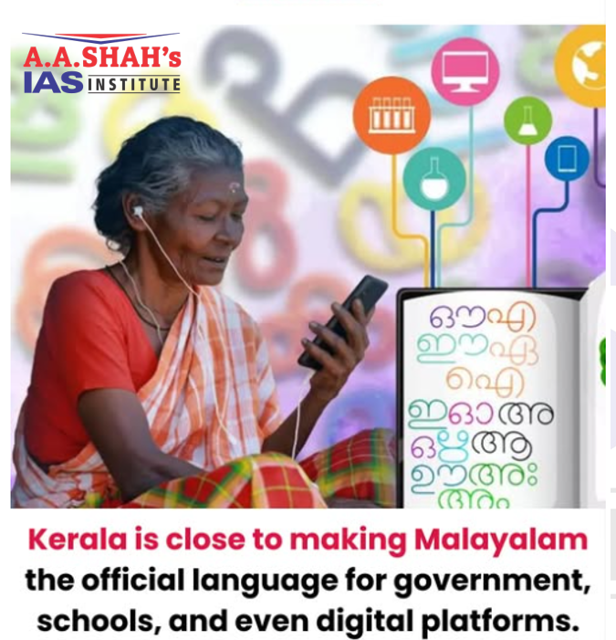 - It seeks to formally adopt Malayalam as the official language of Kerala, and mandates its use across government, education, judiciary, public communication, commerce, and the digital domain, subject to constitutional provisions. Presently, the State recognises both English and Malayalam as official languages.