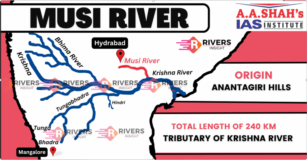 - Musi river, in spate due to heavy rain in its catchment areas, left several localities in Hyderabad flooded, including Mahatma Gandhi Bus Station (MGBS), the main State and inter-State bus terminal managed by the Telangana State Road Transport Corporation (TGRTC).