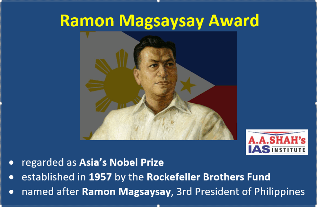 - The Ramon Magsaysay Award, regarded as Asia’s Nobel Prize, was started in 1958 to celebrate “greatness of spirit and transformative leadership in Asia”.