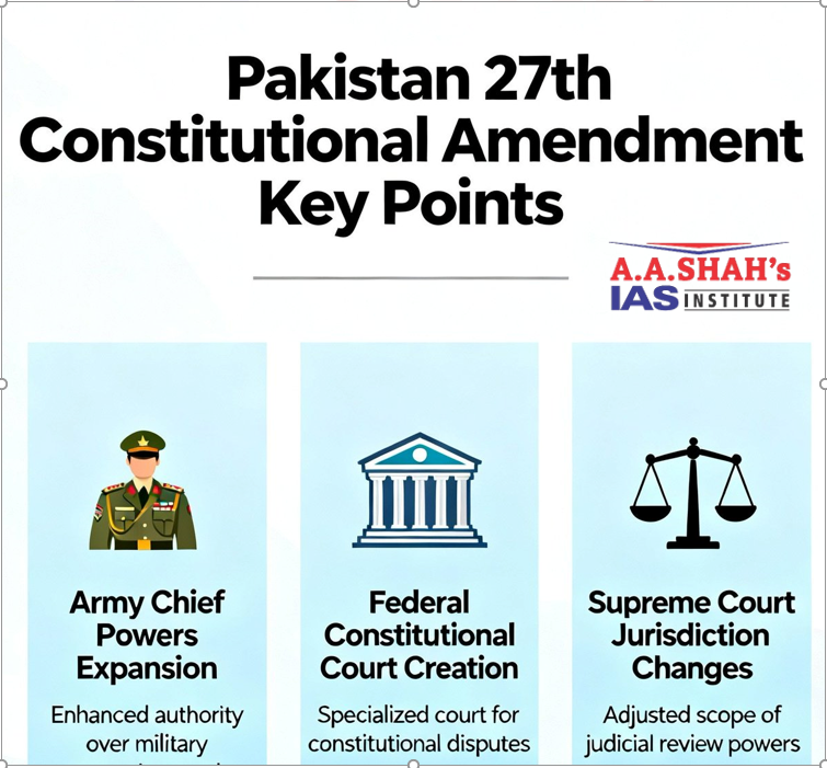 - Pakistan’s Parliament approved a sweeping constitutional amendment granting lifetime immunity to the President as well as the current Army Chief, a move critics warned would erode democratic checks and judicial independence.