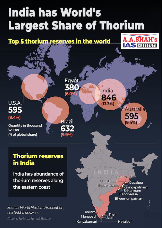 • India possesses about 25% of the world’s thorium reserves.