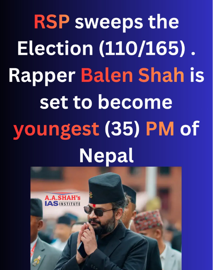 • Mr. Shah, popularly known as Balen, is set to become Nepal’s next Prime Minister, as his party, the Rastriya Swatantra Party (RSP), heads for a landslide victory in the first election since 2025 Gen Z protests that toppled the Oli government.