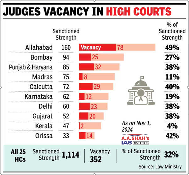 - The DoJ figures show that Bombay, Calcutta and Punjab and Haryana High Courts also have considerable vacancies.