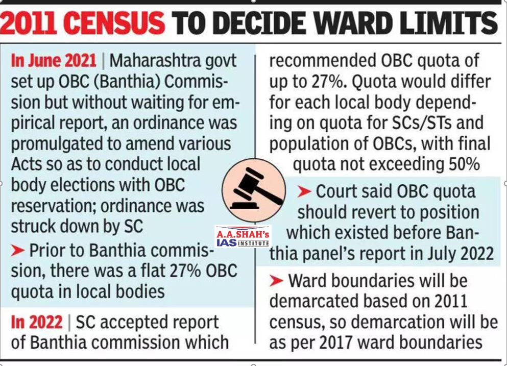 - On May 6, 2025, the apex court directed the State Election Commission to conduct elections with OBC reservation as existed prior to the 2022 Banthia Commission report.