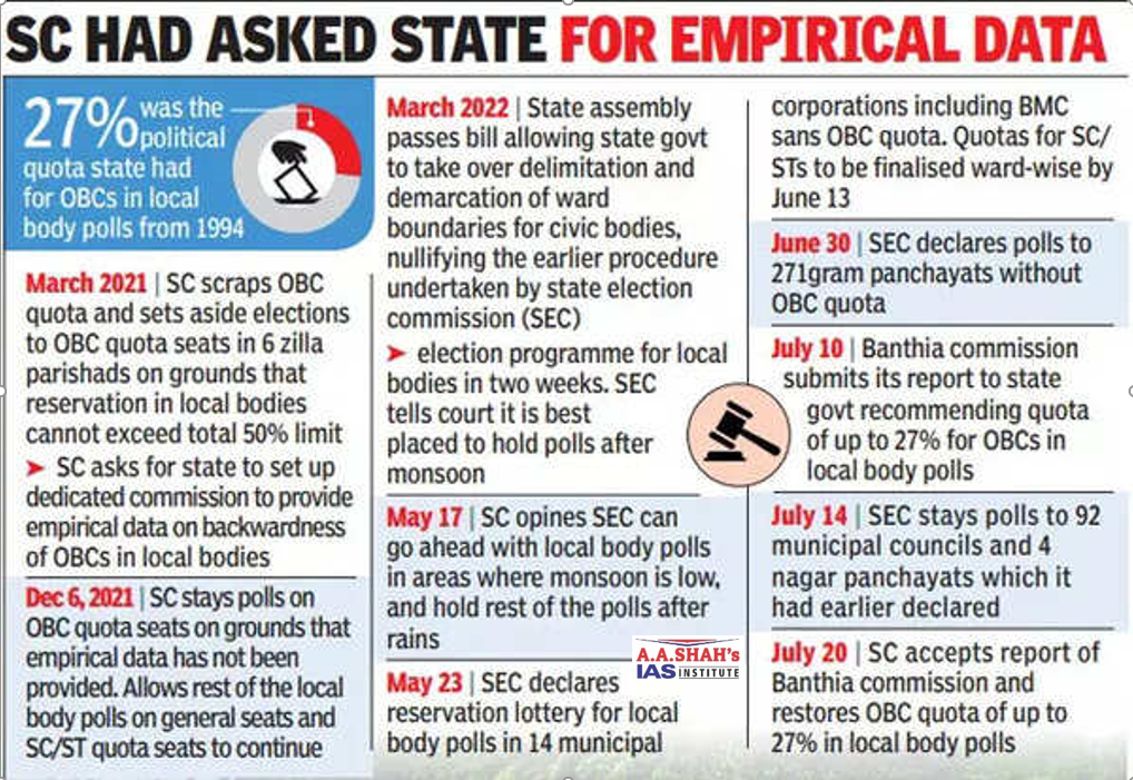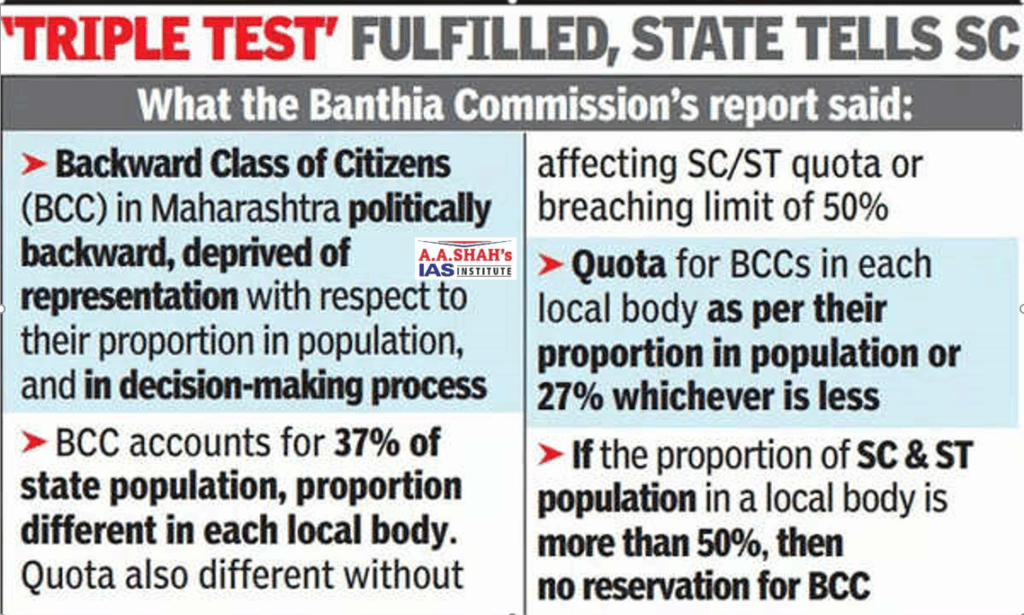 - As the State of Maharashtra failed to fulfil this test, in March 2022, the Banthia Commission was set up.