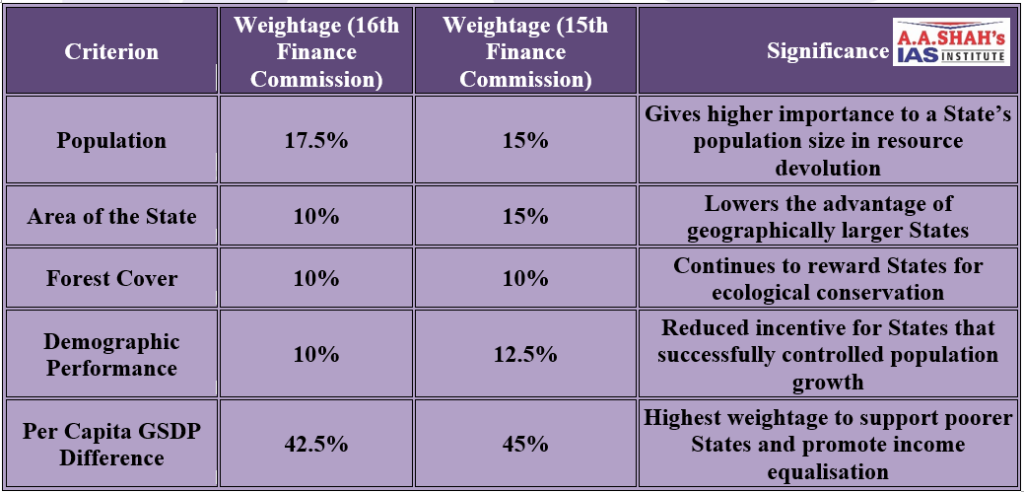 - A State’s population now accounts for 17.5% of the weightage up from the previous 15%.