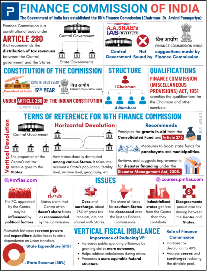 - The 16th Finance Commission chaired by Arvind Panagariya, submitted its report to the President on November 17, 2025, which was tabled in Parliament on 1st February 2026.