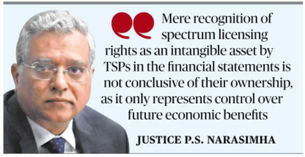 - The Supreme Court of India has ruled that telecom service providers (TSPs) do not own spectrum and therefore cannot treat it as an intangible asset under the Insolvency and Bankruptcy Code (IBC).
