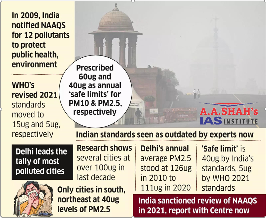 • Not a single district in the country reported concentrations within the World Health Organisation (WHO) guideline of 5 g/m³ (microgram per cubic metre), which is about eight times more stringent than India’s standards (40 g/m³),