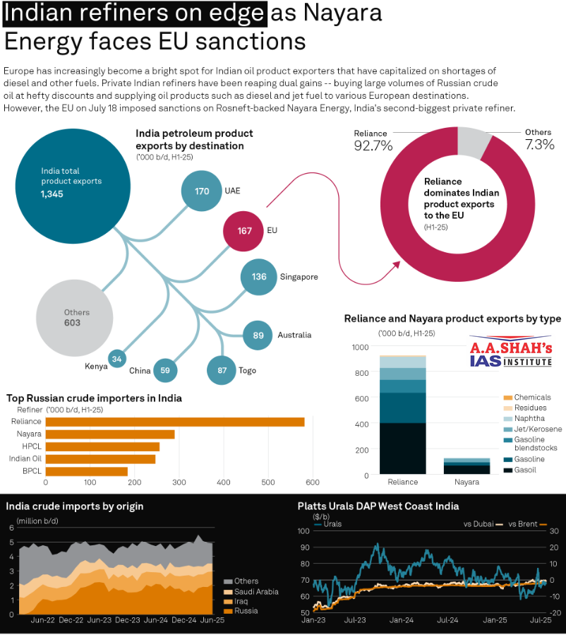 - Nayara imported 100 million barrels of Russian crude (worth over $5 billion) in 2024, as per U.K.