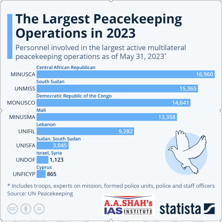 - Roughly 13,000 to 14,000 military and police personnel out of more than 50,000 peacekeepers deployed across nine global missions will be sent back to their home countries.