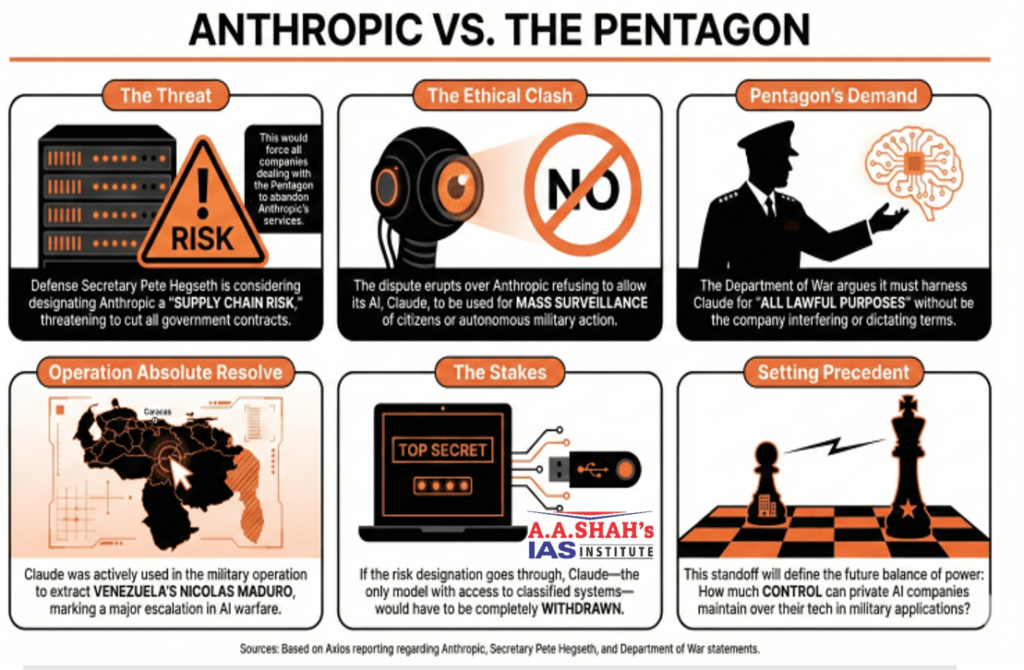 • The U.S. Department of Defence (styled as the Department of War under the second Donald Trump administration) has entered into a public spat with the AI firm Anthropic, which makes the Claude AI product.