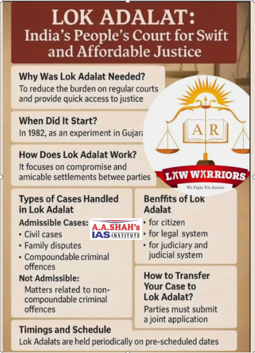 • The first Lok Adalat in India was organised in Gujarat in 1999.